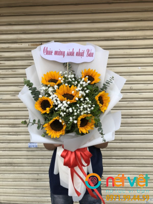 Hoa hướng dương có nhiều ý nghĩa trong tình bạn, tình yêu và cuộc sống nên là món quà đặc biệt nên có trong buổi sinh nhật. Loài hoa này là biểu tượng của mặt trời, thể hiện sự kiên định, vững vàng, tình cảm chân thành, luôn hướng về những điều tốt đẹp phía trước.