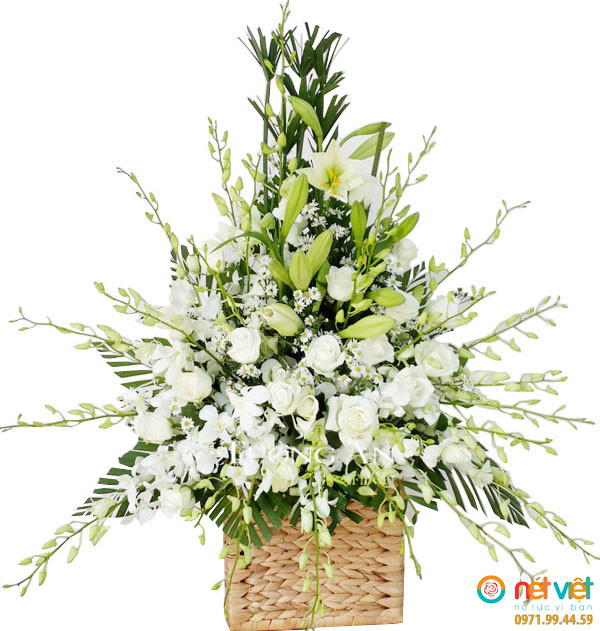 Shop hoa Bình Định thiết kế các mẫu hoa tang lễ hiện đại và đẹp. Quý khách cần đặt hoa tại Bình Định vui lòng liên hệ với shop hoa Nét Việt để được tư vấn đặt hoa.