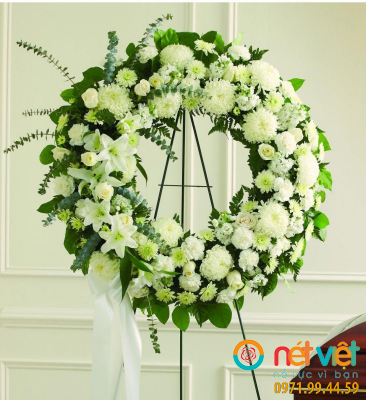 Vòng hoa huệ tây làm vòng hoa viếng người ít tuổi là lời tiễn đưa người quá cố về nơi an nghỉ cuối cùng và cũng là lời động viên, an ủi toàn thể gia quyến vượt qua nổi buồn này. Những bông hoa ly với sắc hoa trắng tinh khôi là hoa đại diện cho những tâm hồn trong sáng của người đã khuất khi còn quá trẻ.