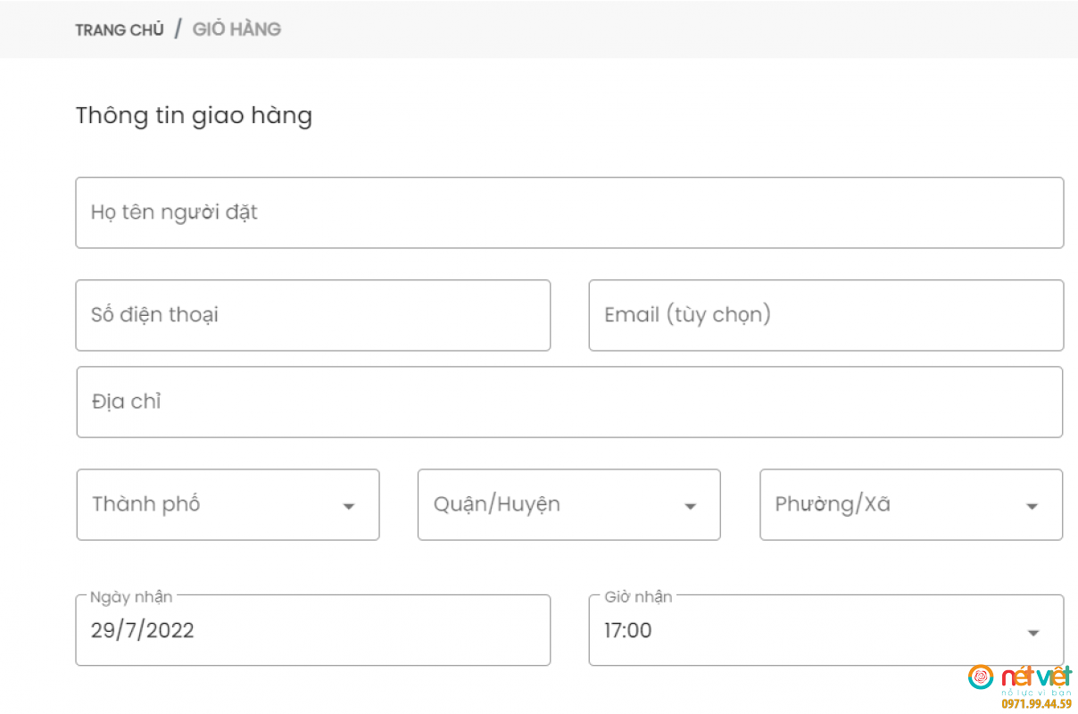 Bước 2: Điền thông tin vào form đặt hàng để shop hoa Nét Việt phục vụ chính xác và nhanh nhất: